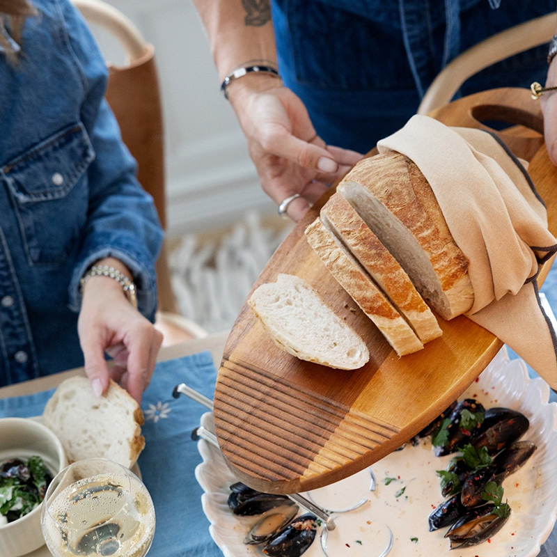 Ante skjærebrett i 50 cm fra Sagaform er laget av sertifisert akasietre, og er en kombinasjon av funksjon og håndverk. Den ovale formen med vakre utskårne riller i den ene enden gjør Ante til et skjærebrett som gjerne kan stå fremme. Tre er dessuten mer skånsomt mot kniver og varer lenger enn andre materialer.