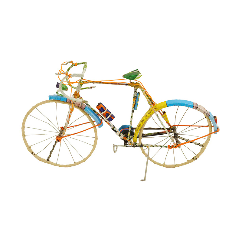 BABA sykkel fra A World of Craft er et håndlaget dekorelement fra resirkulert tinn, ståltrå og gummi. I Mali og flere Afrikanske land har de lenge laget dekorelement og leker fra tilgjengelige materialer som tinn, ståltrå og skrap gummi. Alle syklene er ulike, og farge og detaljer varierer.