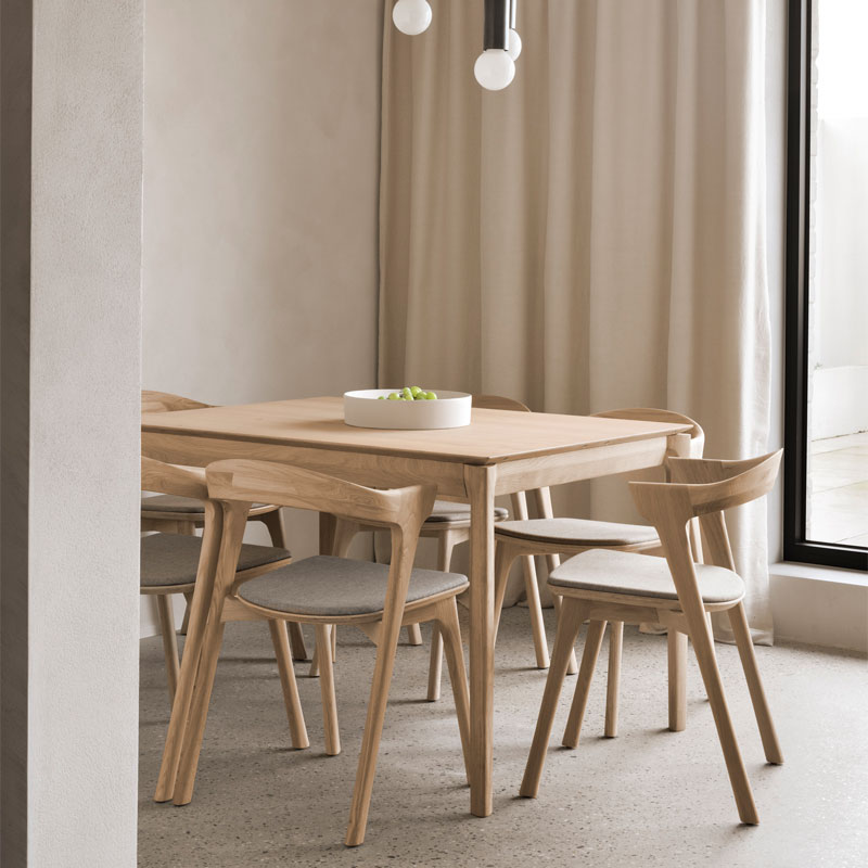 Bok spisebord med uttrekk fra Ethnicraft kombinerer skulpturell eleganse med moderne håndverk. Det karakteristiske Bok-bordet kan trekkes ut for å samle enda flere rundt bordet. Den luftige utformingen, kombinert med solid konstruksjon i heltre gjør dette uttrekksbordet til et tidløst og elegant møbel som vil glede i mange år.