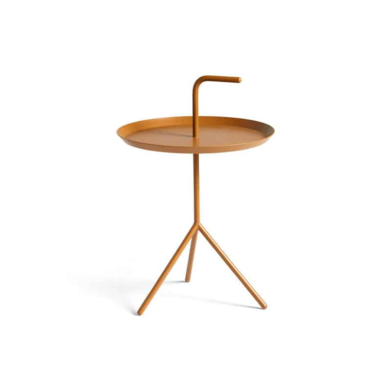 Med håndtaket på toppen, er ideen bak sidebordet DLM (Don’t Leave Me) åpenbar – ta meg med! Et brett med ben og et håndtak, slik at du kan ta med bordet og kaffekoppen din sammen når du beveger deg rundt i huset – til din favoritt stol eller sengen – dette er et bord som passer overalt. Sidebordet fra HAY er et alternativ til de tradisjonelle kaffebordene som ofte er store, tunge og vanskelig å flytte. Dette er et morsomt bord for det moderne liv.