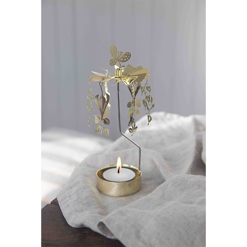 Englespill Stig L. Herbarium fra Pluto Design i gullbelagt stål snurrer majestetisk rundt og lager et nydelig spill. Englespillet passer perfekt som en ekstra dekorasjon og er en vakker interiørdetalj.