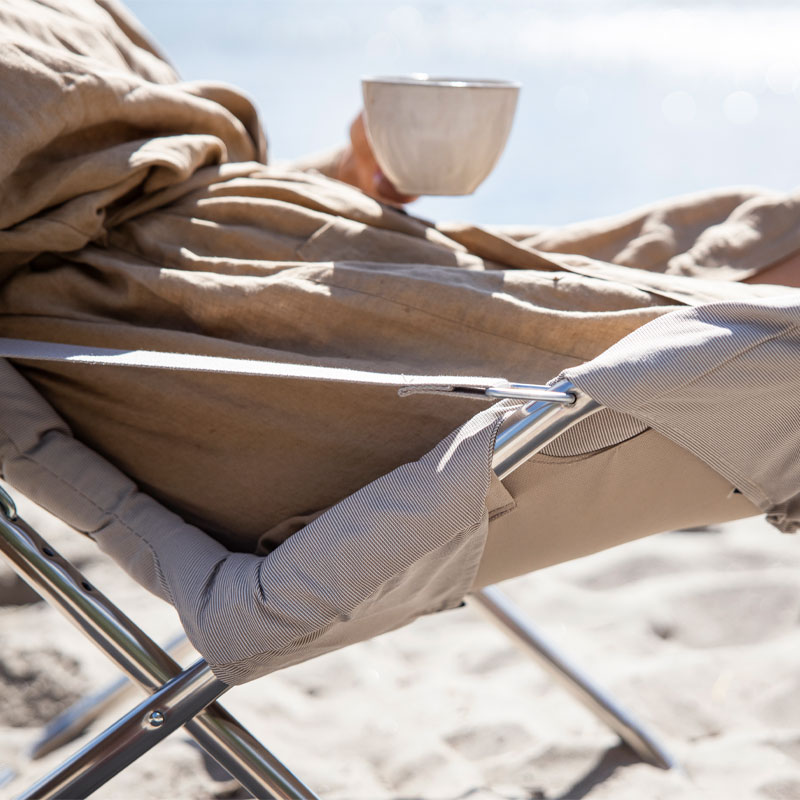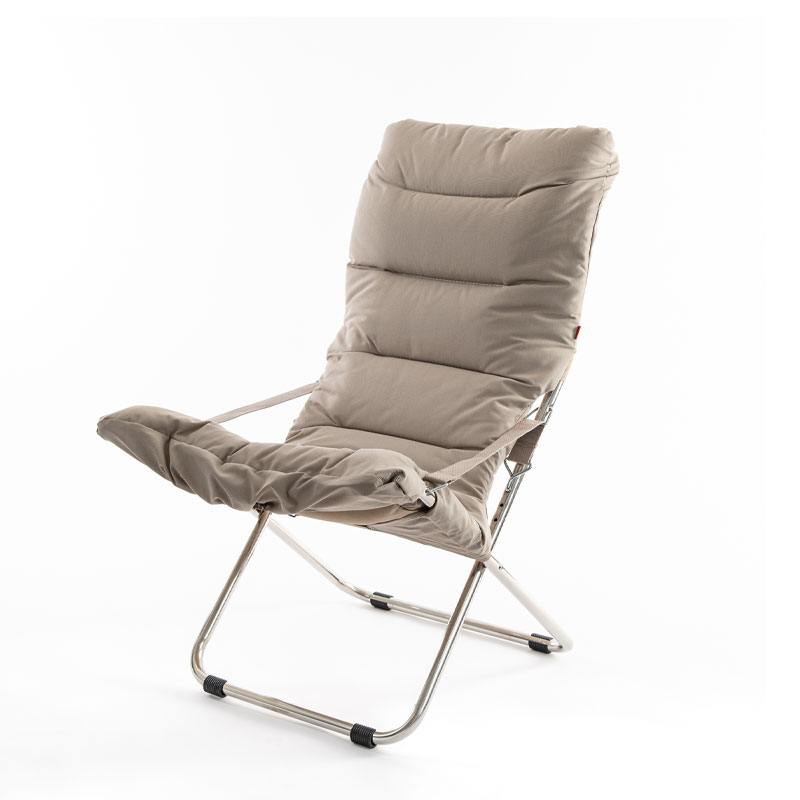 Stolen kan ikke brukes uten pute. Stolen kan enkelt reguleres i fire posisjoner og kan slås sammen når du ikke trenger den.