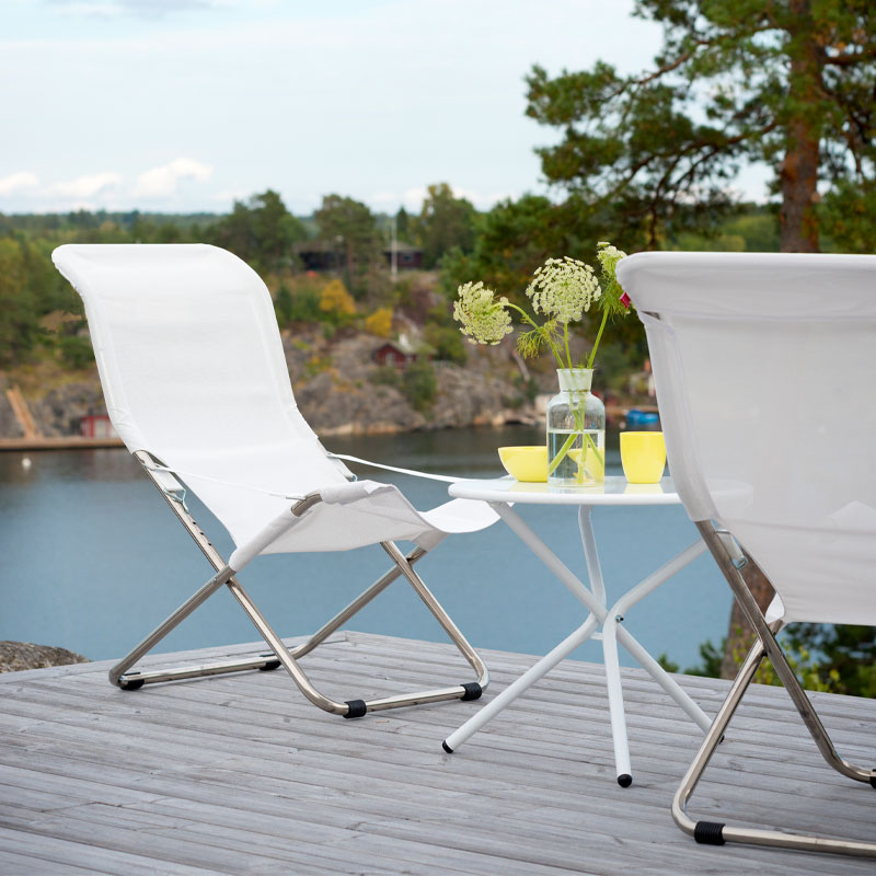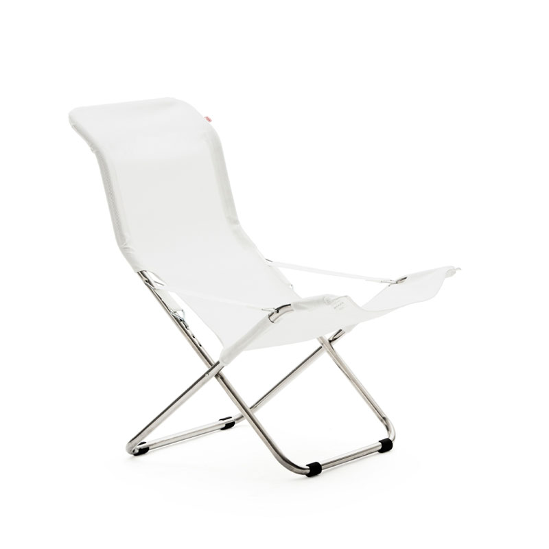 Fiesta texfil solstol fra fiam er en lett og komfortabel loungestol med slitesterkt texfil-sete og solid aluminiumsramme. Ryggen kan justeres i flere posisjoner for god støtte og avslapning. Materialene tåler både sol og regn, noe som gjør stolen ideell til terrassen, på hytta eller stranda.