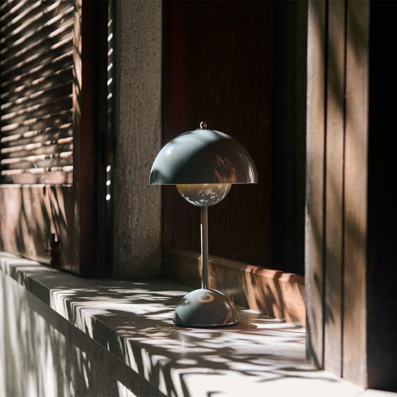 Flowerpot VP9 Oppladbar Bordlampe er en litt mindre og lettere versjon av Flowerpot VP3, utstyrt med USB-ladekabel som gjør den enkel å bruke både inne og ute. Den ikoniske formen, designet av Verner Panton på 1960-tallet, regnes som et av de mest normbrytende danske designene fra sin tid. I dag finnes Flowerpot-serien i hele syv ulike modeller, og VP9 tilfører en koselig atmosfære uansett hvor du plasserer den.