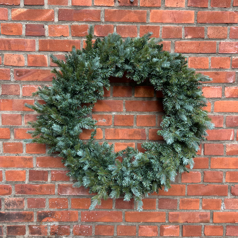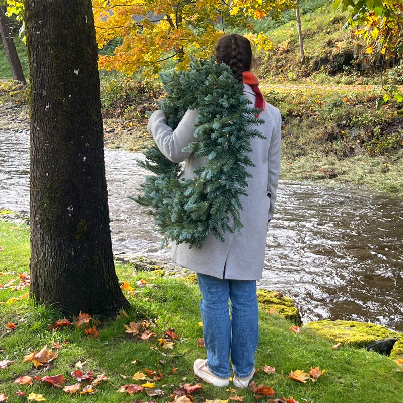 Kransen har 80 små lyspærer som er batteridrevet (timer). 3 x AA batterier (følger ikke med)