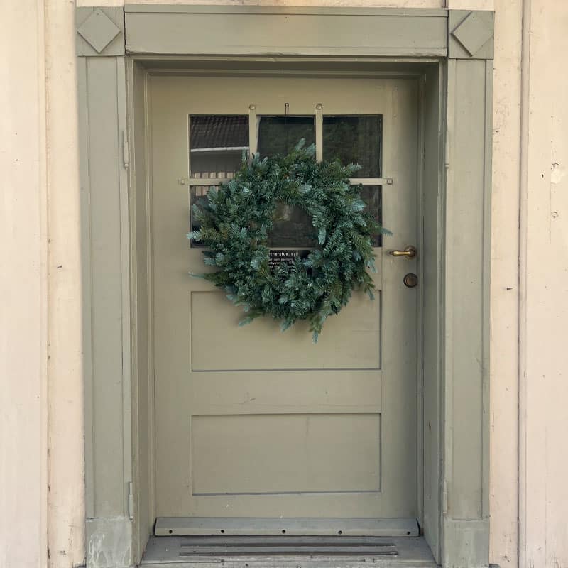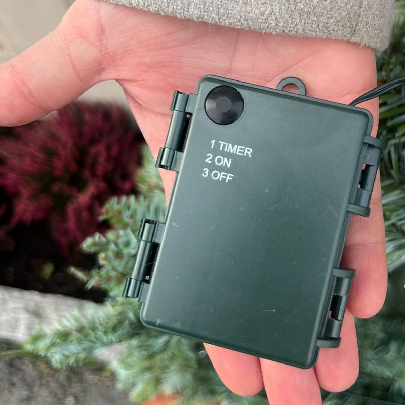 Kransen har 60 små lyspærer som er batteridrevet (timer). 3 x AA batterier (følger ikke med)