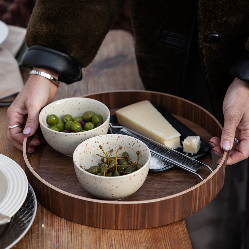 Hanna rundt serveringsbrett fra Sagaform er laget av sertifisert valnøtt og osp. Serveringsbrettet har to integrerte håndtak, høye kanter som er perfekt hvis frokosten nytes i sengen.