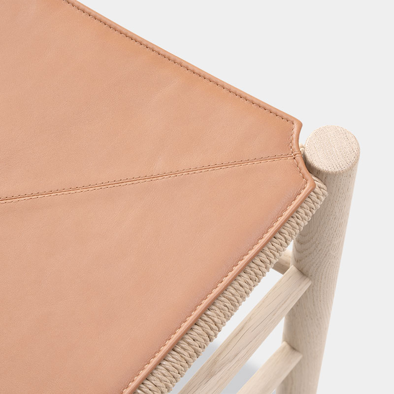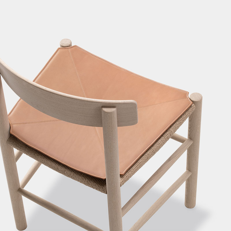 J39 Sittepute er laget av overskuddsskinn fra produksjonen av større sofaer. Det karakteristiske trekantmønsteret i designet gjenspeiler stolens klassiske diagonaler og gir et harmonisk uttrykk. Resultatet er en elegant og bærekraftig pute som reduserer materialsvinn uten å gå på kompromiss med kvalitet.