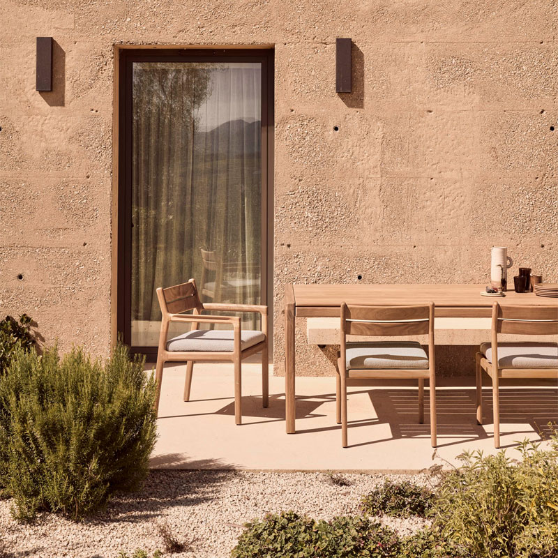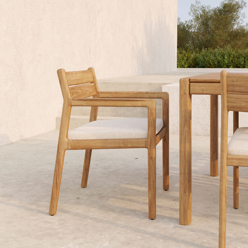 Jack spisestol med arm fra Ethnicraft er en komfortabel og stilren utestol i massiv teak. De avrundede armlenene gir ekstra støtte, mens den solide konstruksjonen sikrer lang levetid. Et tidløst valg som passer perfekt til både moderne og klassiske uteområder.
