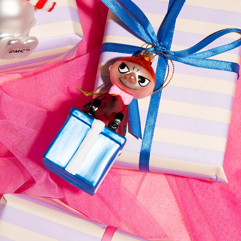Lille My julekule fra HEIM Studio er håndmalt med miljøvennlig maling. Alle som elsker Mummitrollet sitt univers, vil elske den lille hissigproppen med rød kjole og oppsatt hår.