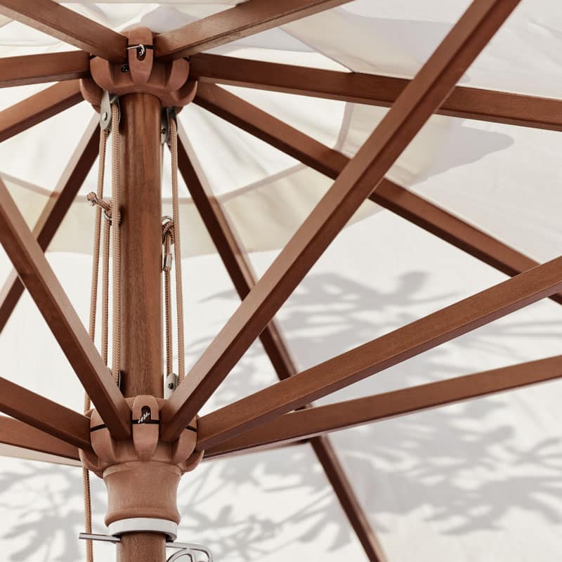 Parasollstang i klarlakkert heltre (kapur) med teflonbehandlet parasolltekstil.