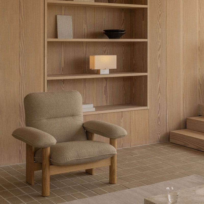 Nonna Bordlampe Travertine er en tidløs bordlampe med base i travertinstein og en elegant skjerm i lin og akryl som gir et varmt, dempet lys. Den kombinerer naturlige materialer med nordisk design, og passer perfekt på nattbordet, i stuen eller på hyllen for et sofistikert, rolig uttrykk.