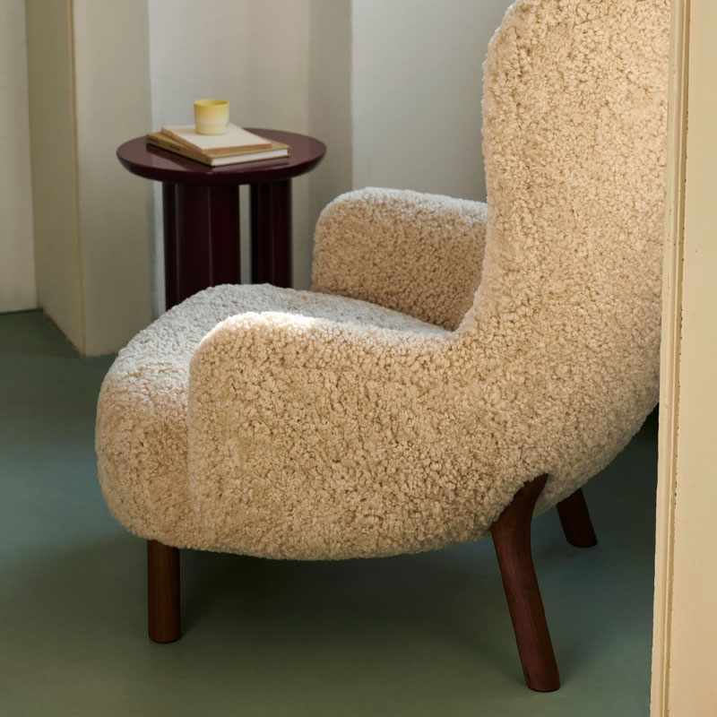 Petra VB3 Lenestol med fotskammel fra &tradition er et ikonisk design av Viggo Boesen fra 1938. Stolen har en solid ramme i oljet eik eller valnøtt, kombinert med polstring i skum og vattering for maksimal komfort. Trekket finnes i eksklusivt stoff eller saueskinn, og hvert møbel utstråler både varme og tidløs eleganse.