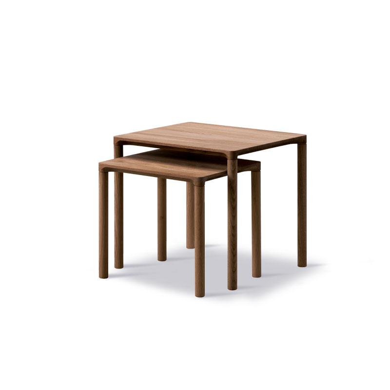 Piloti nest sofabord fra Fredericia er et elegant sett med to bord i massiv eik, designet av Hugo Passos. Bordet har en subtil profilert bordplate som går nesten sømløst over i beina.