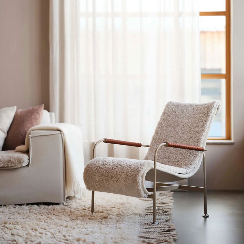 Serpentine lenestol i saueskinn fra Swedese kombinerer rene linjer med et moderne og elegant uttrykk. Stolen er designet av Broberg & Ridderstråle og har en lett stålkonstruksjon, myk saueskinnspolstring og gjennomtenkte detaljer som gir høy komfort og tidløs skandinavisk design.