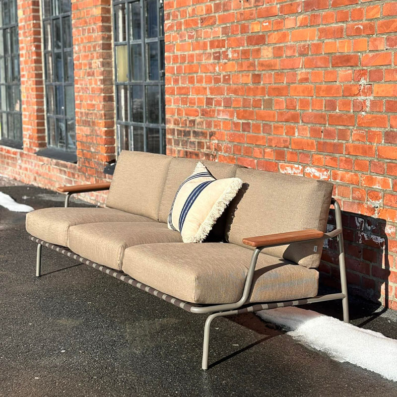 For å forlenge levetiden på sofaen anbefaler vi å legge pressening eller trekk over sofaen når det regner.