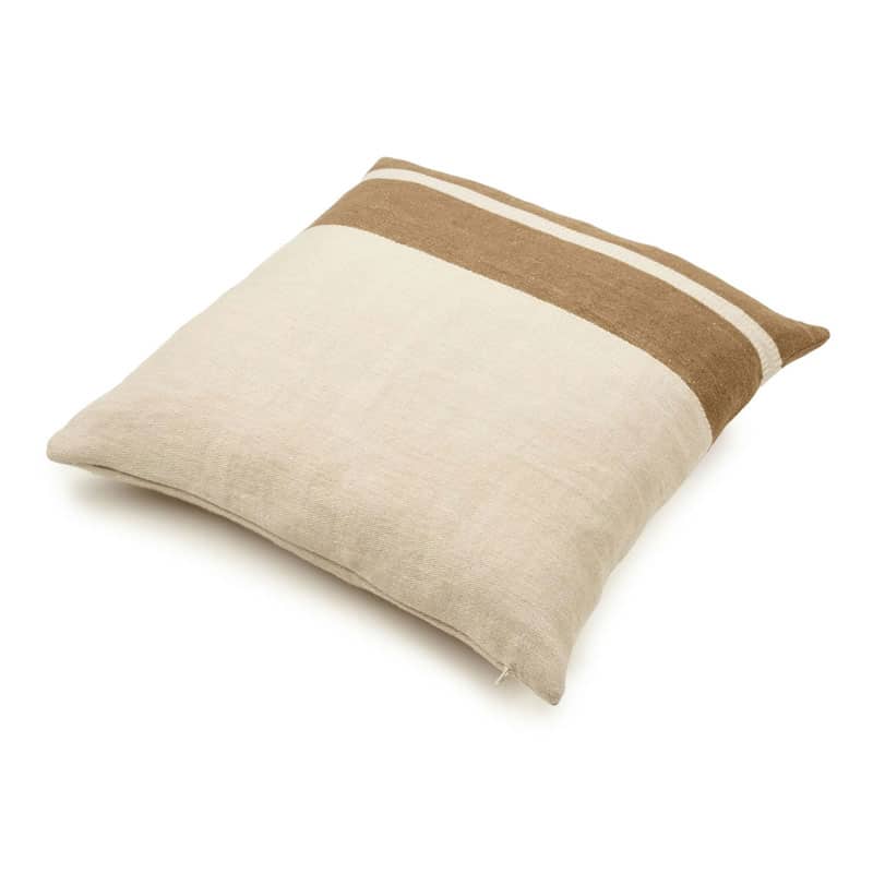 The Belgian Railroad Stripe Pute fra belgiske Libeco er laget i 100 % lin og leveres med dunpute inkludert. Puten har en off-white base med siennabrune striper.