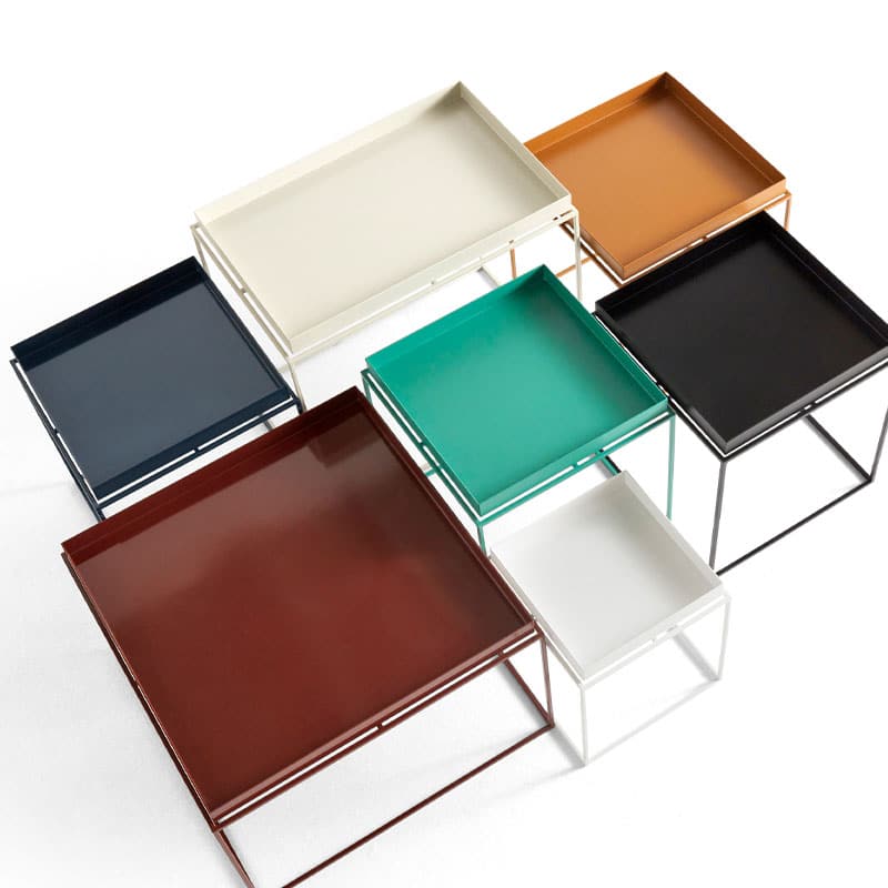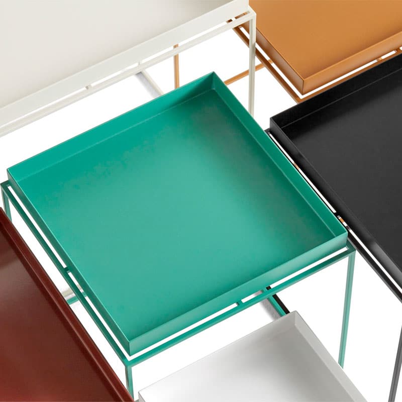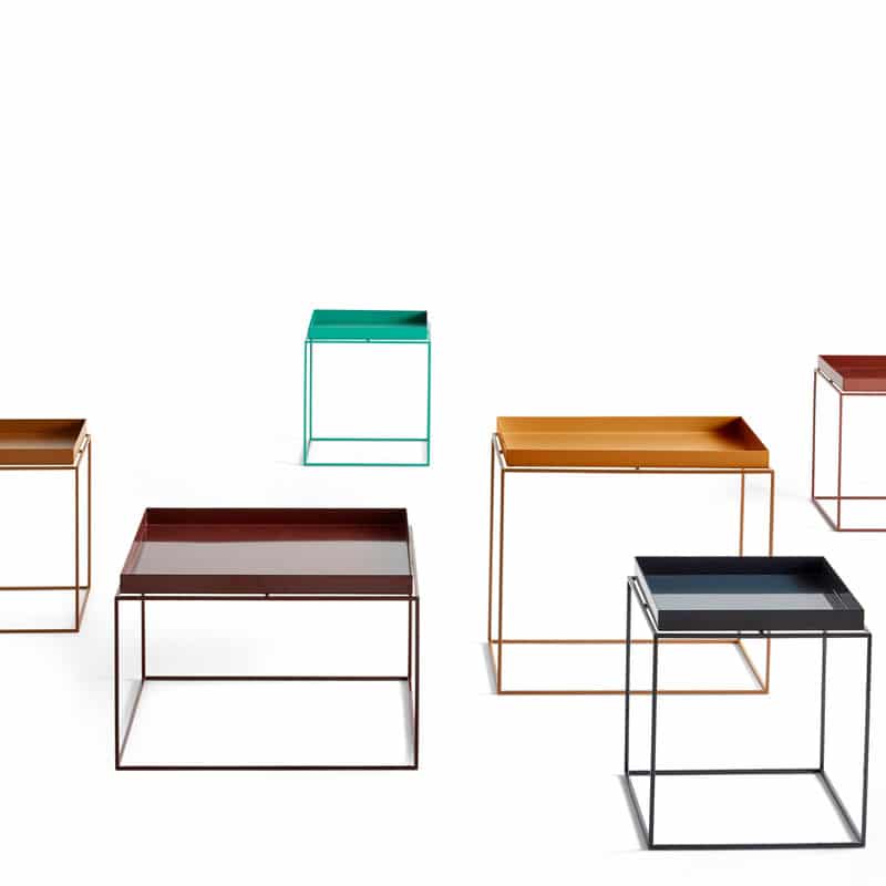 Tray Table 30×30 – Nette og praktiske småbord som er perfekt til de skiftende behovene i et rom. Skift ut det store tunge salongbordet med en kombinasjon av et eller flere Tray Tables fra HAY i stedet. Bordet består av en pulverlakkert solid stålramme og et flyttbart brett, tilgjengelig i to farger og fire størrelser. Bordene kan kombineres uendelige eller stables for å lage en liten hylle.