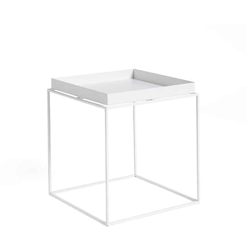 Tray Table 40×40 er en serie med nette og praktiske småbord som er perfekt til de skiftende behovene i et rom. Skift ut det store tunge salongbordet med en kombinasjon av et eller flere Tray Tables fra HAY! Bordet består av en pulverlakkert solid stålramme og et flyttbart brett, tilgjengelig i flere farger og størrelser.