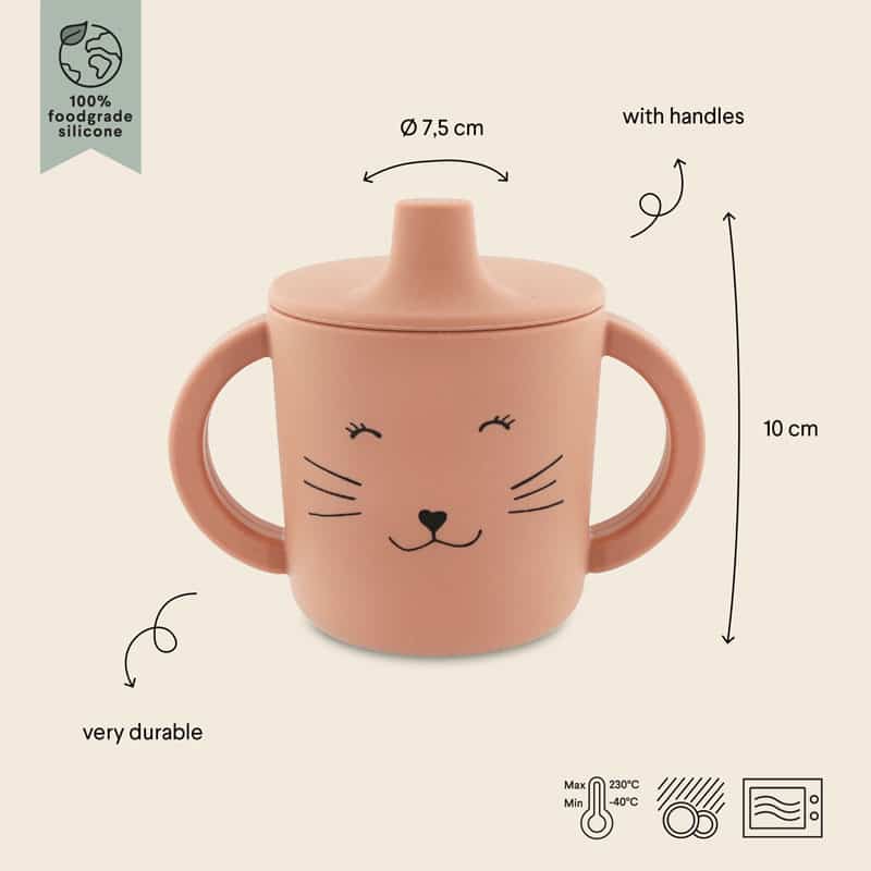 Tutekoppen har store håndtak som gjør det lett for barnet å holde og drikke uten søl, perfekt både hjemme og på farten. Laget av slitesterk, 100 % matgodkjent silikon som tåler mikrobølgeovn, oppvaskmaskin, fryser og stekeovn. En trygg og praktisk kopp som varer lenge.